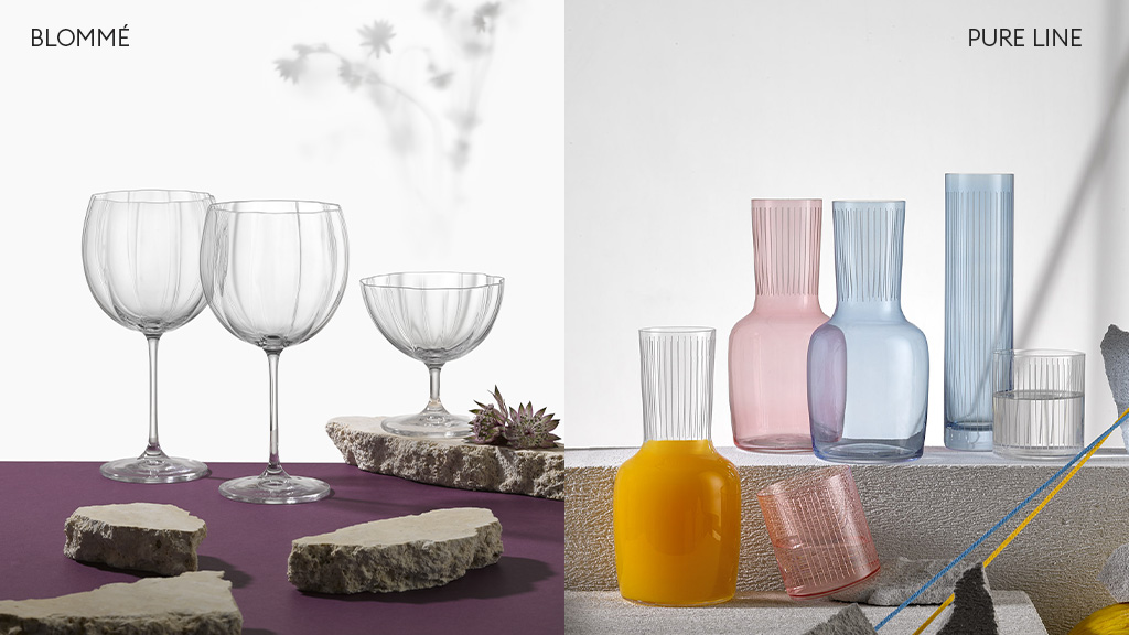 Vstoupíte do prostoru, kde se protiklady setkají v harmonii. Pure Line promluví čistým vertikálním řezem – oslavou přesnosti, ticha a tvaru. Blommé rozkvete v měkkých liniích – povypráví o křehké síle přírody a emocích zachycených ve skle. Dohromady vytvoří choreografii světla a formy – minimalistickou i poetickou, strukturovanou i měkkou.