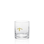 Whisky glass decorated with a fine motif reminiscent of a fly – subtly painted with golden colour, which adds a touch of luxury to the glass. The polished cut enhances the clarity of the glass and contrasts with the golden decoration, which looks like a tiny jewel on the surface.