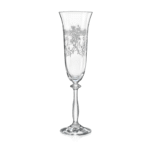 Inspired by tradition and rustic style. This is the Royal Panto sparkling wine glass, which boasts rich ornaments created by etching. The classic charm is enhanced by the shaped cup with decorated foot.