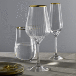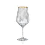 The charming Tulip wine glass with optics creates an interesting effect. Its originality is all the more emphasised by the gilded rim, with which it acquires just the right touch of luxury. The glass is perfect for special occasions, which will shine thanks to its presence.