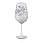The wine glass with the motif of the astral sign Capricorn will add the magical beauty of the night sky to any table. The glass is decorated with an original screen print, and is offered on either a matte black or white background.