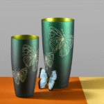 Život motýlů je jedním slovem fascinující. Chcete si i vy dodat do svého domova symbol luční atmosféry a dopřát si pohled na inspirující stvoření? Pak určitě nepřehledněte působivou vázu z kolekce Meadow s výjevy motýlů tvořenými diarytem. Hlavní roli v jejím designu hrají dvě stříkané kontrastní barvy – uvnitř zlatá a navenek smaragdová zelená v matném provedení.