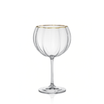 Sklenice na koktejl Blommé Aurea staví na organickém tvaru kolekce a přidává zlatý ráfek, který sleduje každou křivku kalicha s přesností a lehkostí. Výsledek je čitelný na první pohled: české sklo, které nepotřebuje dekor navíc.
