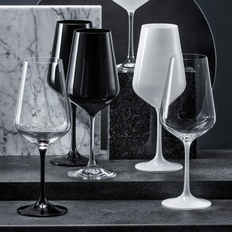 Černá a bílá. Dvojice barev, která nikdy nevyjde z módy. A právě v duchu jejich nadčasovosti se nese kolekce Black&White, jejíž tvar vychází z populární skleničky Sandra. A zatímco kalíšek vyniká půvabem křišťálového skla, nožička je zdobená jednotnou stříkanou barvou. Zkrátka a dobře – moderní sklenice, která si vaše srdce získá doslova na počkání. Jediný doušek bude stačit.