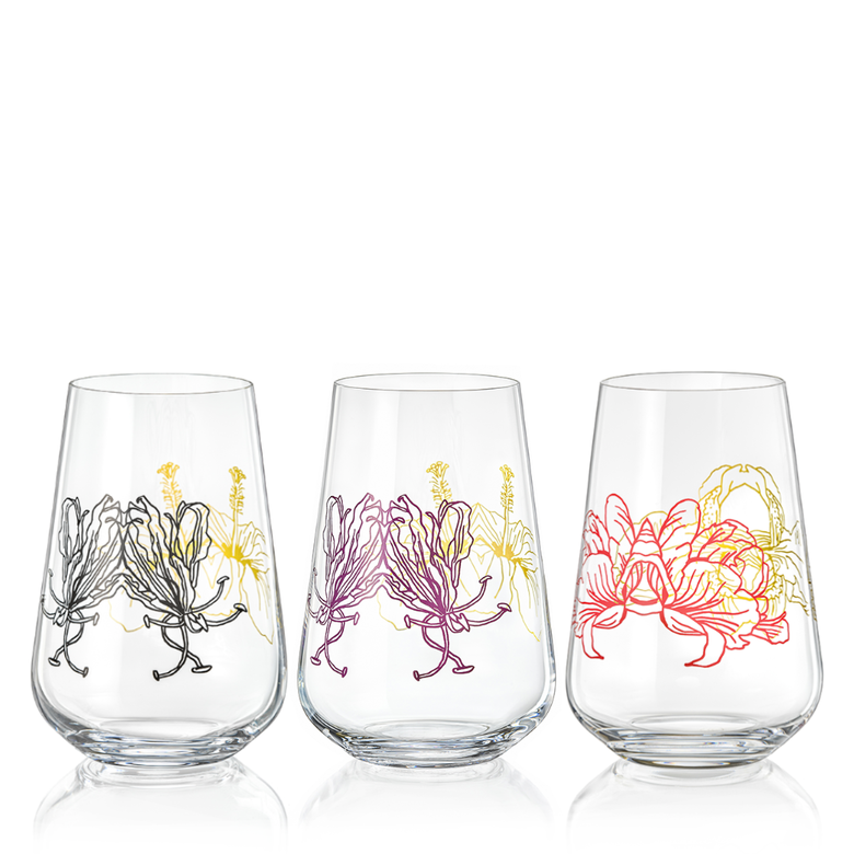 Tento květinový motiv připomíná mucholapku podivnou. Jmenuje se Adéla. Jedinečný retro design zcela jistě rozproudí diskuzi na jakémkoliv posezení, a když sklenici správně natočíte, ze splývajících motivů vykvete zcela nový druh prapodivné rostliny. Tak vzhůru za objevováním!